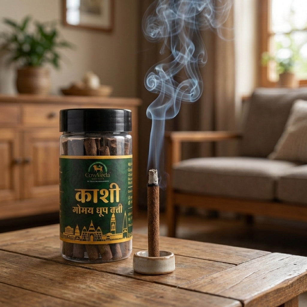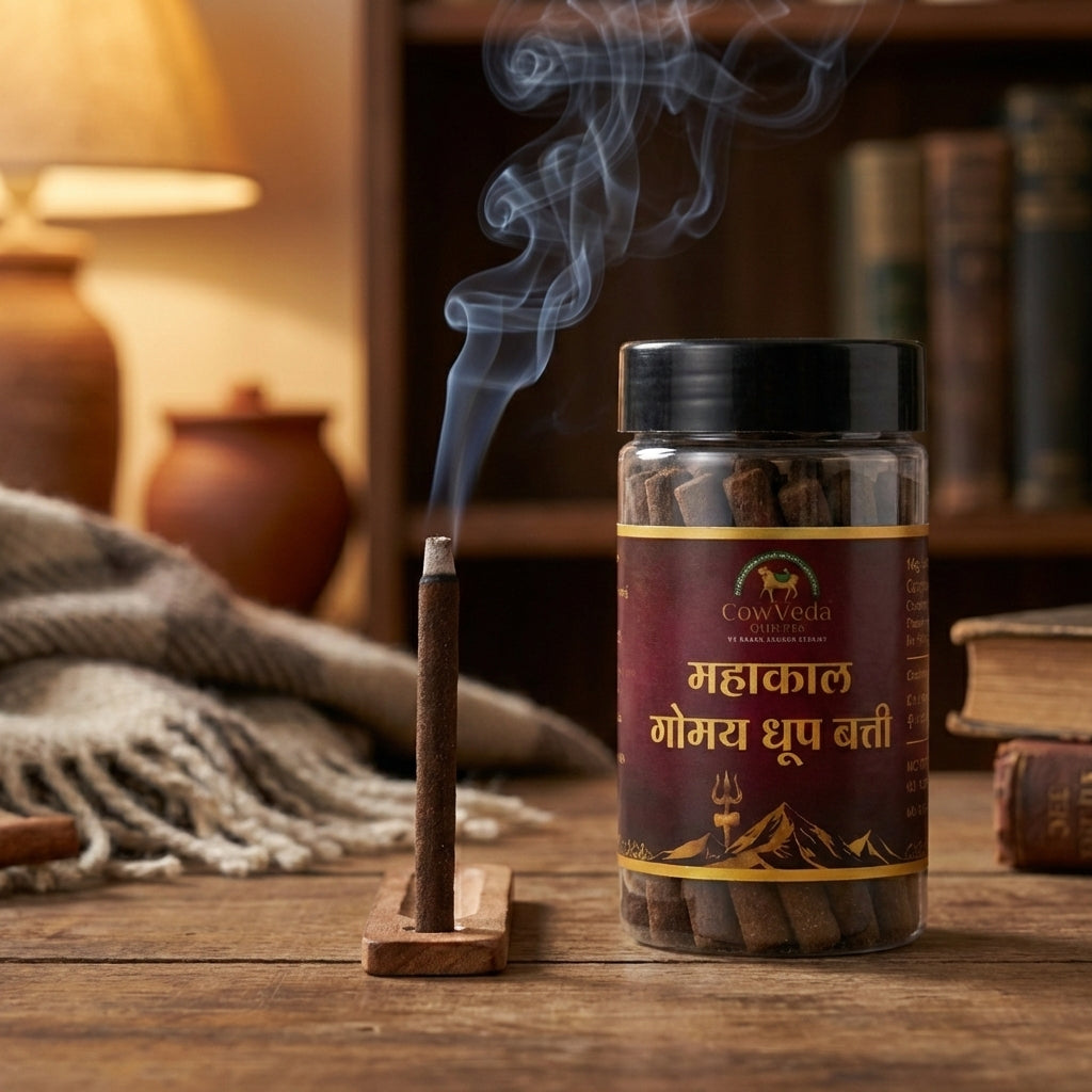 Unlike chemical incense sticks, CowVeda Gomay Dhoop Batti produces a soft, calming aroma that purifies the surroundings and creates a peaceful, sattvic atmosphere. Widely used in temples and homes, gomay dhoop is believed to help neutralize negative energies, purify air, and enhance spiritual vibrations.